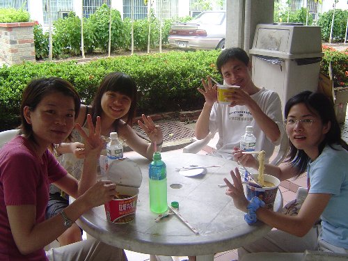 到了曾文水庫,沒有一家餐館有開,只好在便利商店前吃泡麵囉!